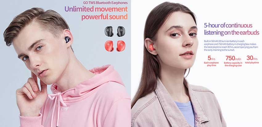 - 5 hours of continuous listening on the earphones plus 25 hours of backup from the charging case