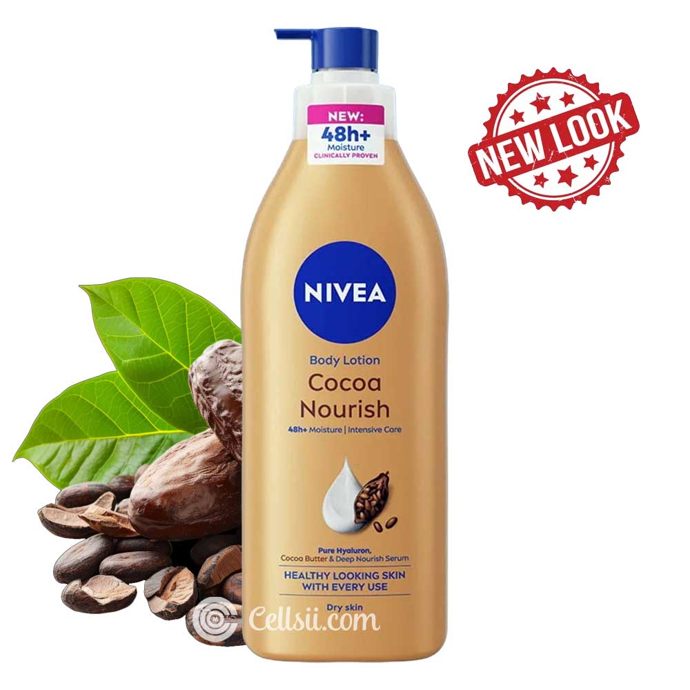 Buy Nivea Body Lotion Cocoa Butter Dry Skin 400ml online in Bangladesh from Cellsii.com. The Nivea Cocoa Butter Body lotion, a rich creamy formula, is infused with our Deep Moisture Serum, Cocoa Butter, and Vitamin E. It delivers intense moisture to dry skin for up to 48 hours, and leaves skin radiant and lightly scented after just one application. Treat yourself to a little extra care, you won't regret it.