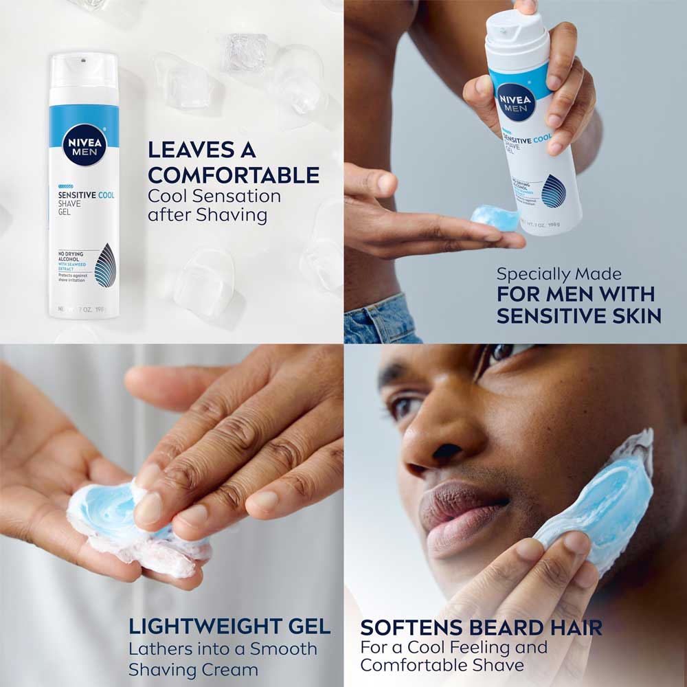 - NIVEA MEN Sensitive Cool Shave Gel for Men with Sensitive Skin, helps fight the five signs of shave irritation.