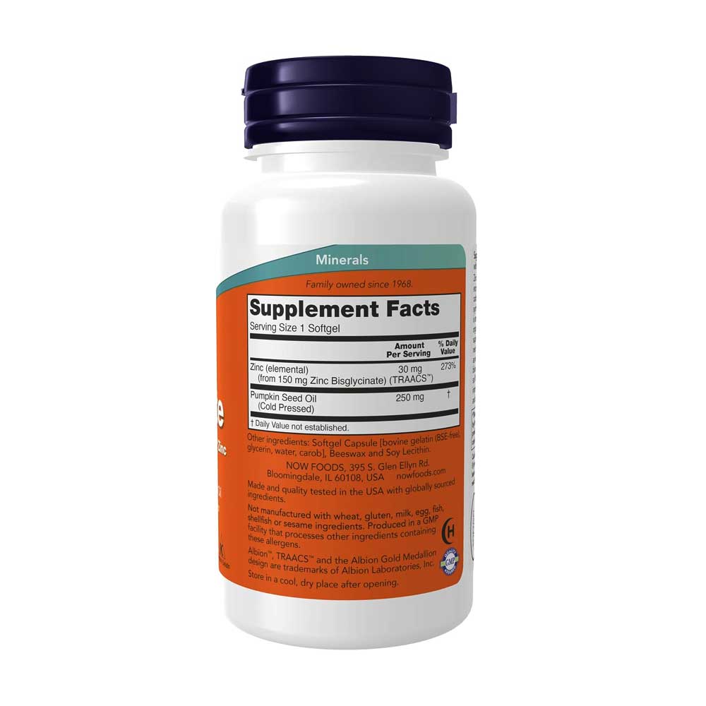 Buy Now Zinc Glycinate 30mg Albion Traacs Zinc Immune Support 120 Capsules online from Cellsii. NOW Zinc Glycinate 30 mg Albion TRAACS Zinc softgels include 250 mg pumpkin seed oil. Zinc is a mineral co-factor in hundreds of enzymatic reactions related to protein and carbohydrate metabolism, RNA/DNA synthesis and intercellular signaling.