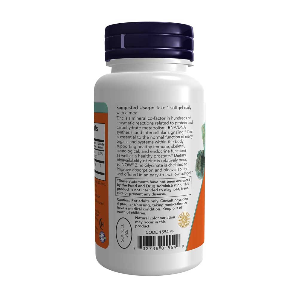 - Dietary bioavailability of Zinc is relatively poor, so NOW Zinc Glycinate is chelated to improve absorption and bioavailability and offered in an easy-to-swallow softgel.