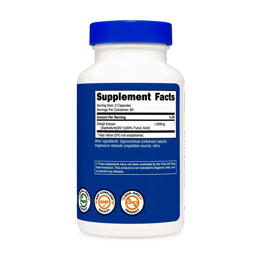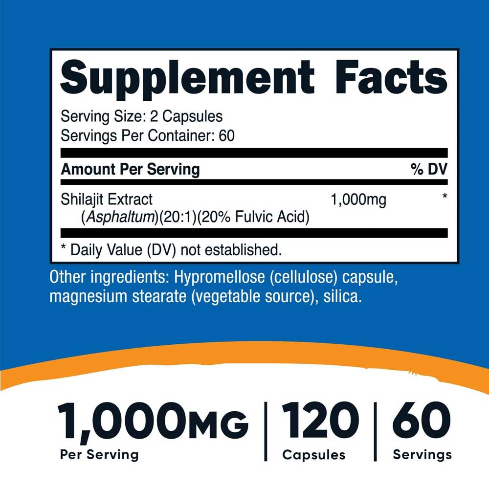 - 60 Servings Per Bottle: Each bottle of Nutricost Shilajit Extract Capsules contains 120 capsules, providing a generous 60 servings, making it a great value for your money.