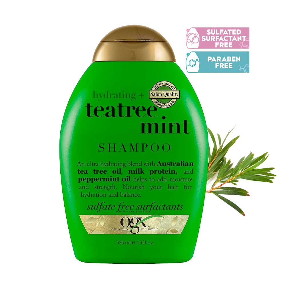 - For all hair types: With a lightweight and sulfate-free formula, this refreshing shampoo is a great haircare product for dry and coarse hair, curly hair, frizzy hair and color treated hair types. Apply, wash, rinse and repeat from the scalp to the ends of your hair and follow up your routine with OGX Hydrating Tea Tree Mint Conditioner.