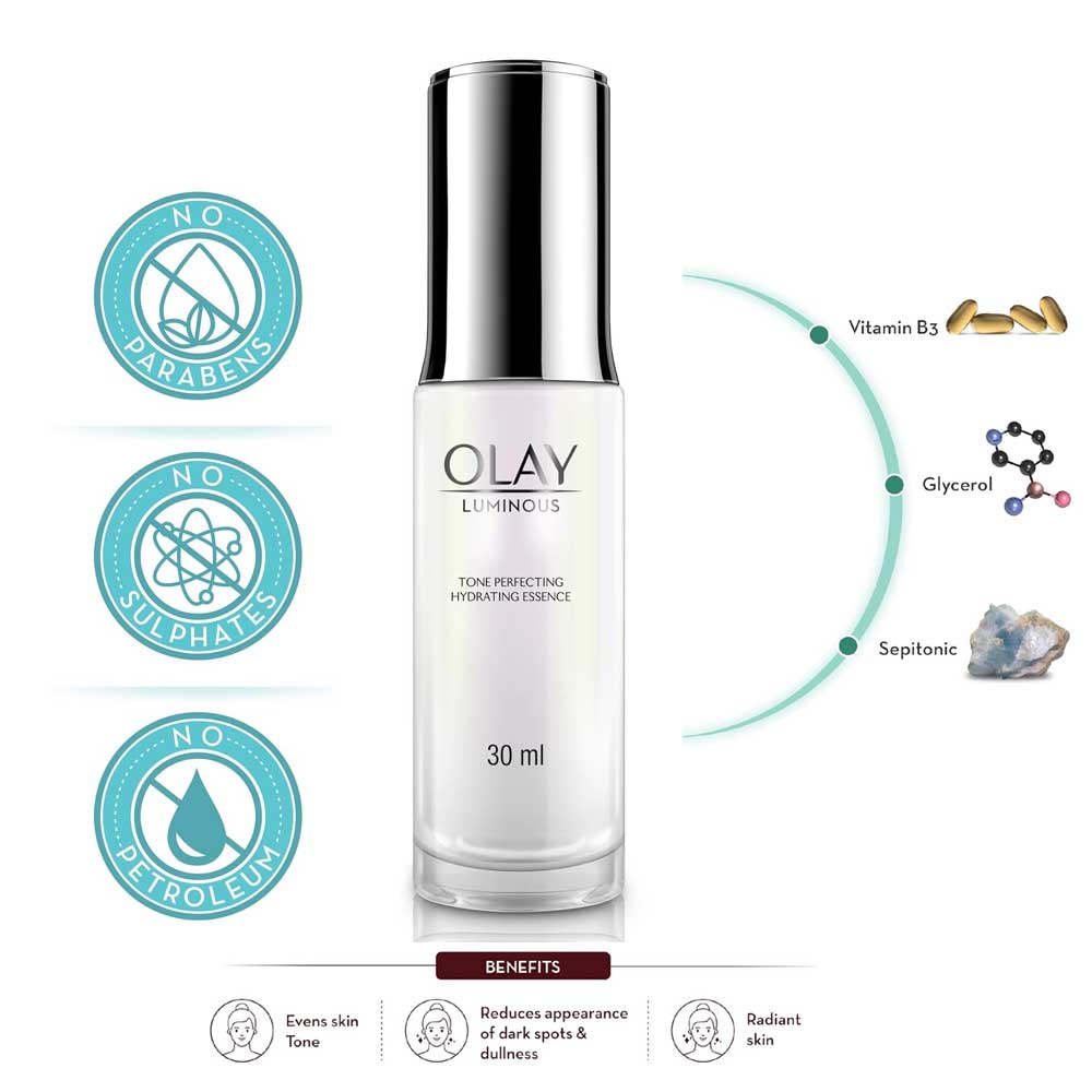 Buy Olay Luminous Tone Perfecting Hydrating Essence 30ml online from Cellsii. Olay luminous essence, Your must-have brightening serum for a holiday glow. Formulated with pearl-optics technology, Luminous essence enhances skin’s light reflection for a radiant, Brighter & translucent skin which is hydrated.