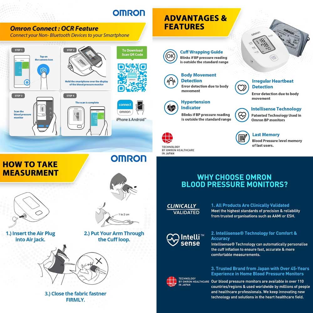 - Ensures comfortable and accurate measurement by automatically inflating the cuff to the ideal level.