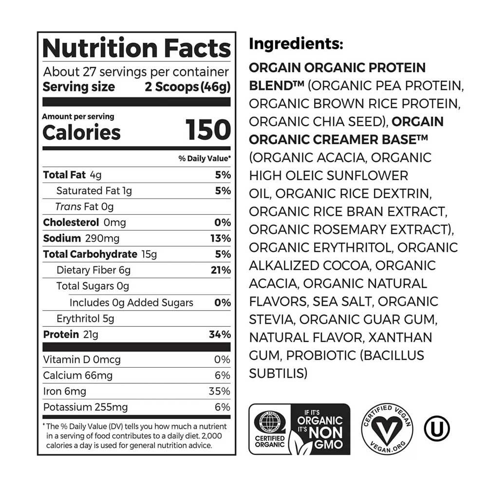 - Orgain Organic Creamy Chocolate Fudge Protein Powder is a naturally smooth and delicious nourishment drink with 21 grams of organic protein and 5 grams of organic fiber per serving.
