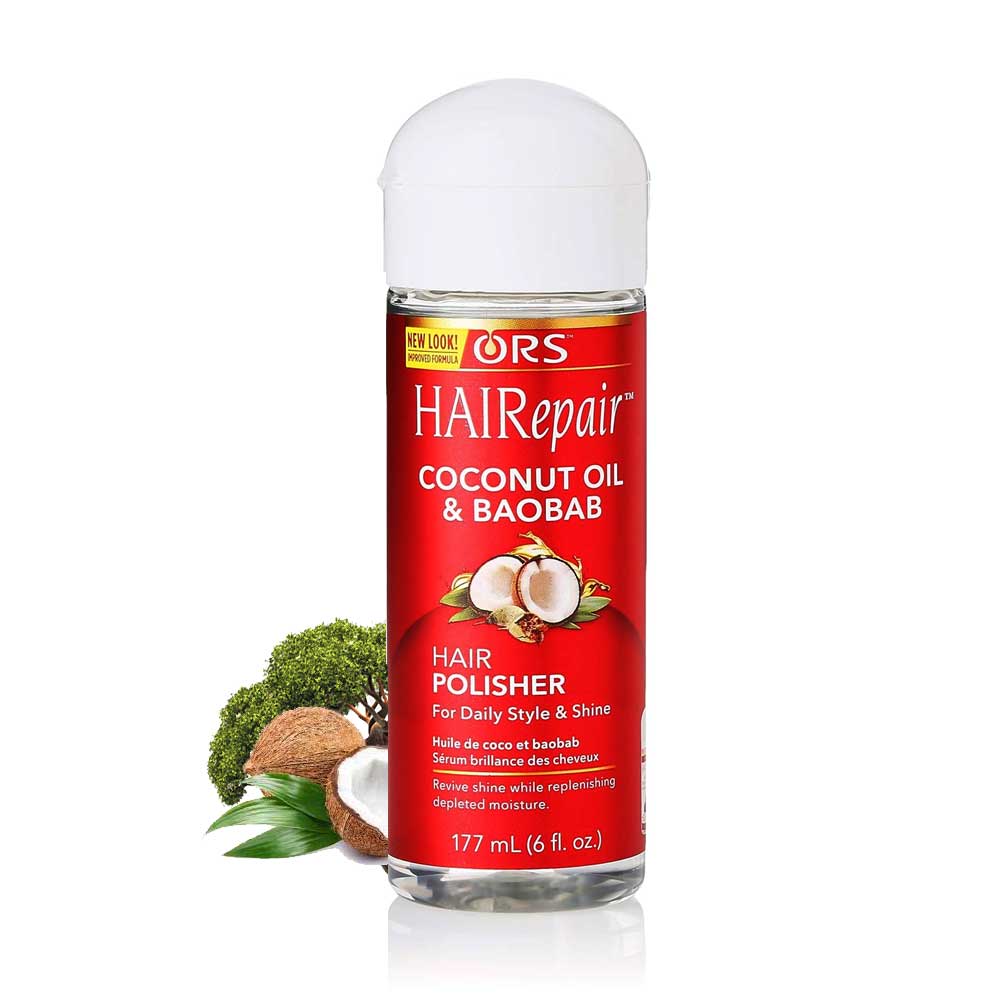 - An instant fix for lackluster hair, this lightweight polisher helps replenish and seal in moisture to enhance shine with a combination of nourishing Coconut and African Baobab oils.