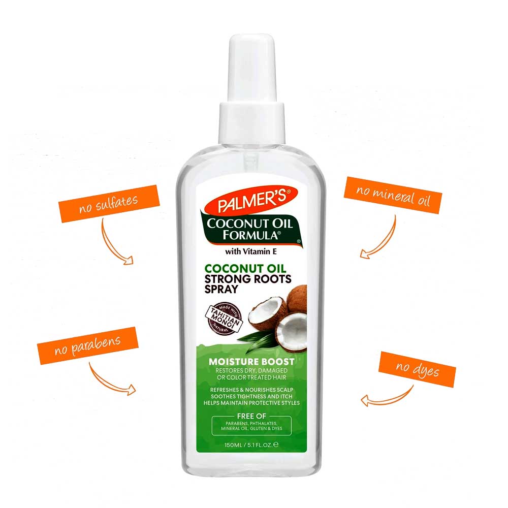 Buy Palmer's Coconut Oil with Vitamin E Strong Roots Spray 150ml online in Bangladesh from Cellsii. Palmer's Coconut Oil Formula Moisture Boost system restores hair experiencing dryness or damage with natural reparatives that instantly and deeply lock in moisture from root to tip, visibly improving your hair’s condition after each use.