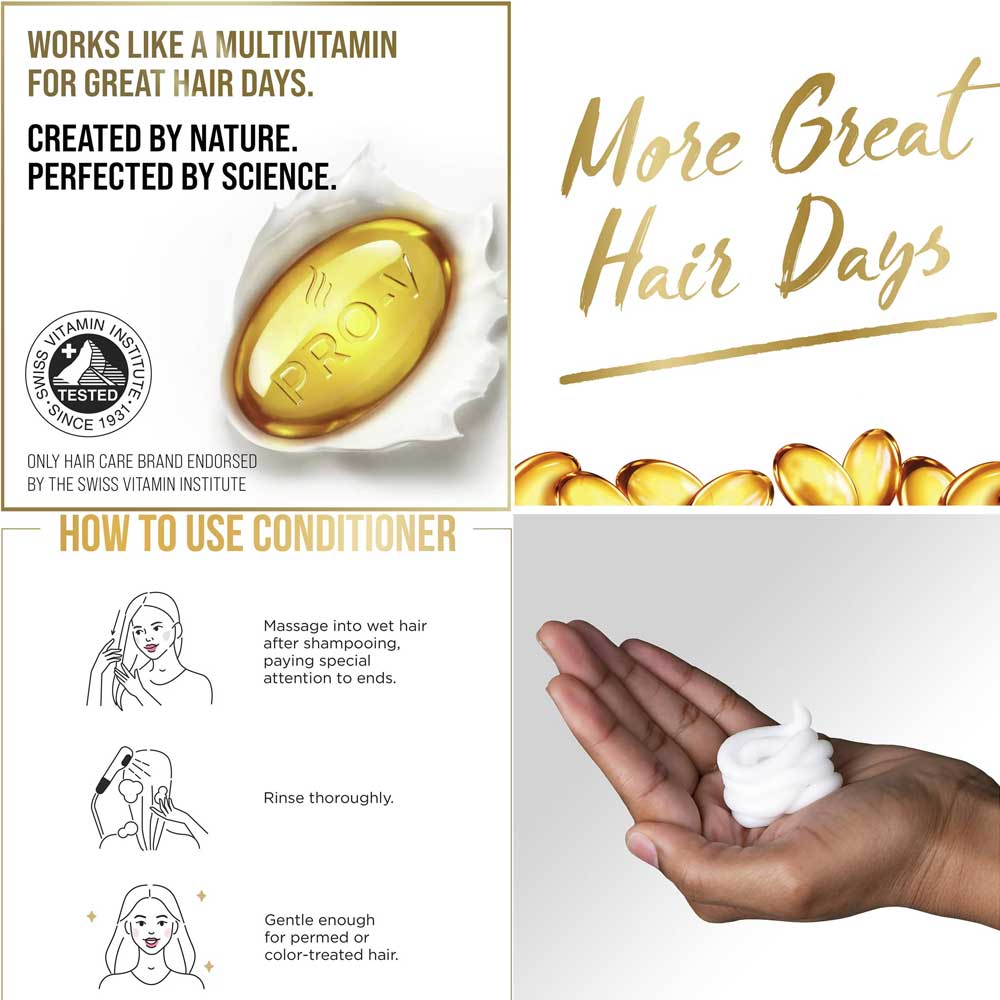 - Hair conditioner for all hair types, Fuels hair’s strength with active Pro-V nutrients conditioner, Gently cleanses, while fueling hair with active Pro-V Nutrients, Leaves your hair beautifully, healthy looking and free-flowing, 0% mineral oils, 0% colourants, Tested by the Swiss Vitamin Institute, 100% recyclable bottle, made with 25% recycled plastic (excluding the cap), Provides balanced nourishment for normal to mixed hair. Brings out healthy-looking shine