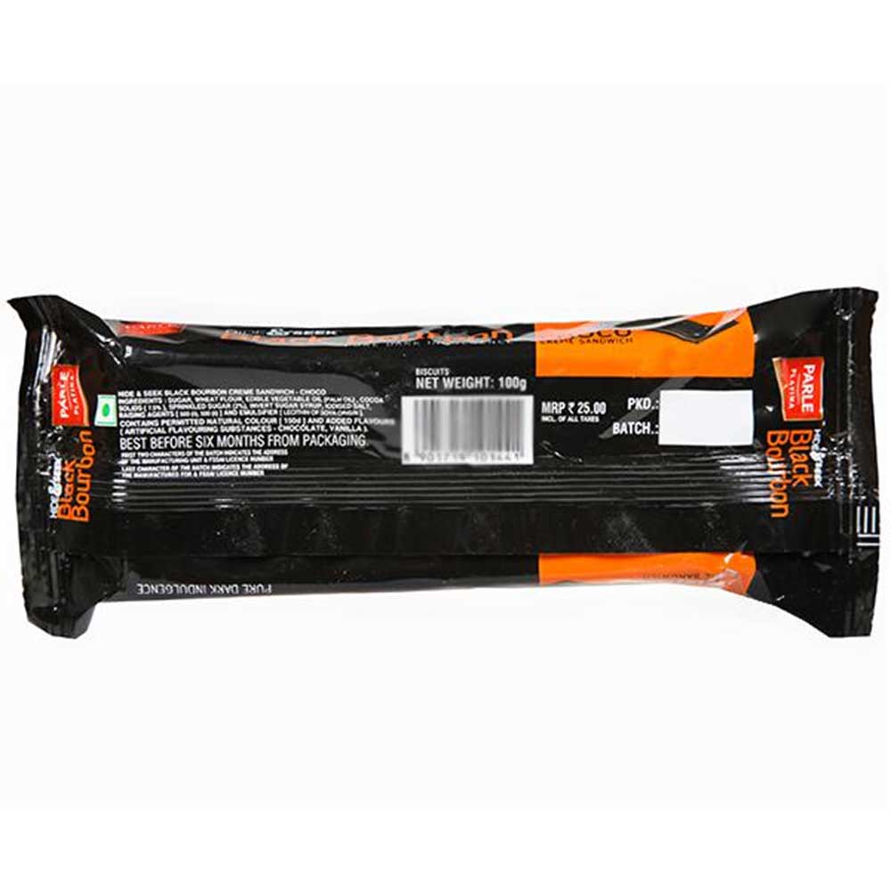 Buy Parle Platina Hide & Seek Black Bourbon Choco Creme Sandwich Biscuits 100g online from Cellsii.com. The moment a bite is taken the tongue starts playing hide n seek with the rich chocolaty cream resting between two lovely sugar-coated biscuits. The melting chocolate cream will feel rich and luscious in mouth. It’s a complete treat for taste buds.