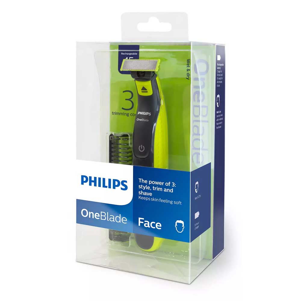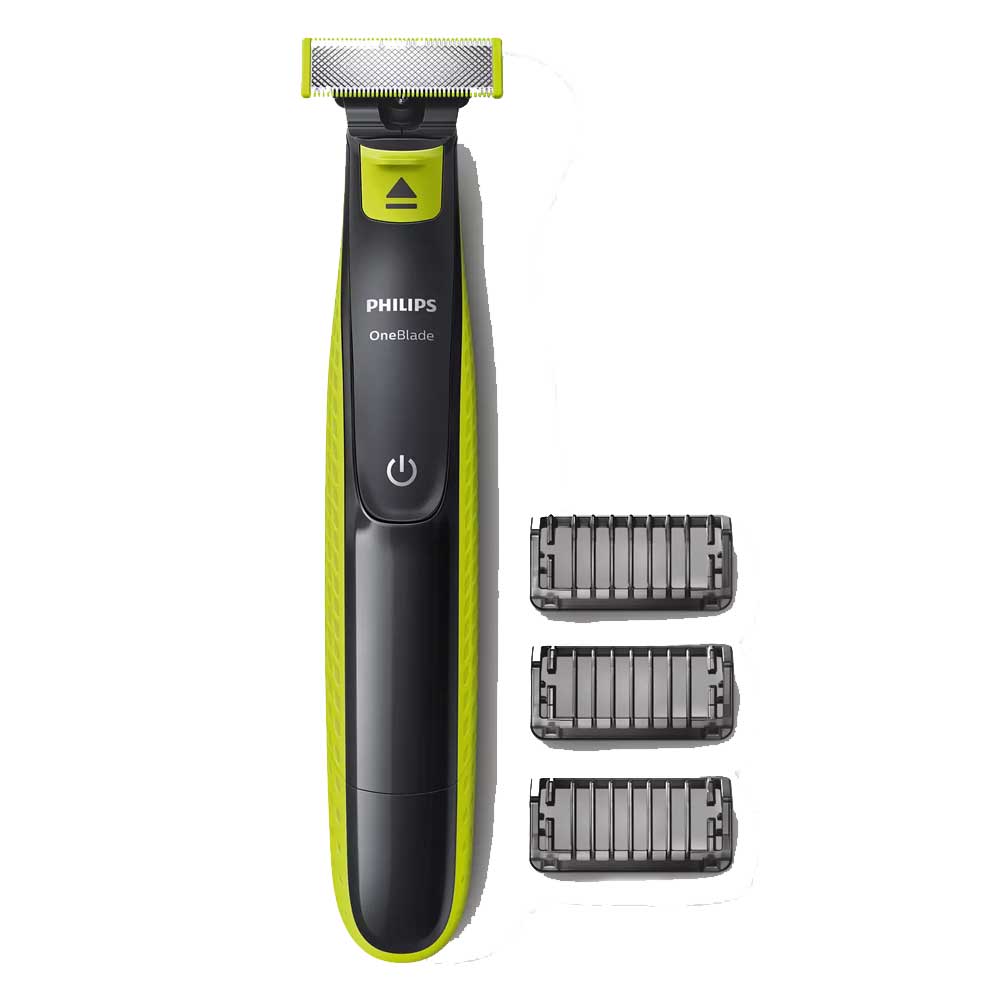 - Rechargeable OneBlade can trim, edge, and shave any length of hair.