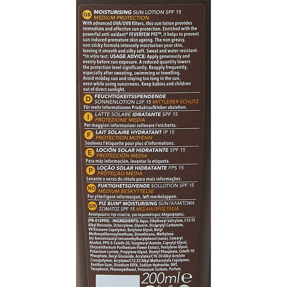Piz Buin Moisturising SPF 15 Sun Lotion