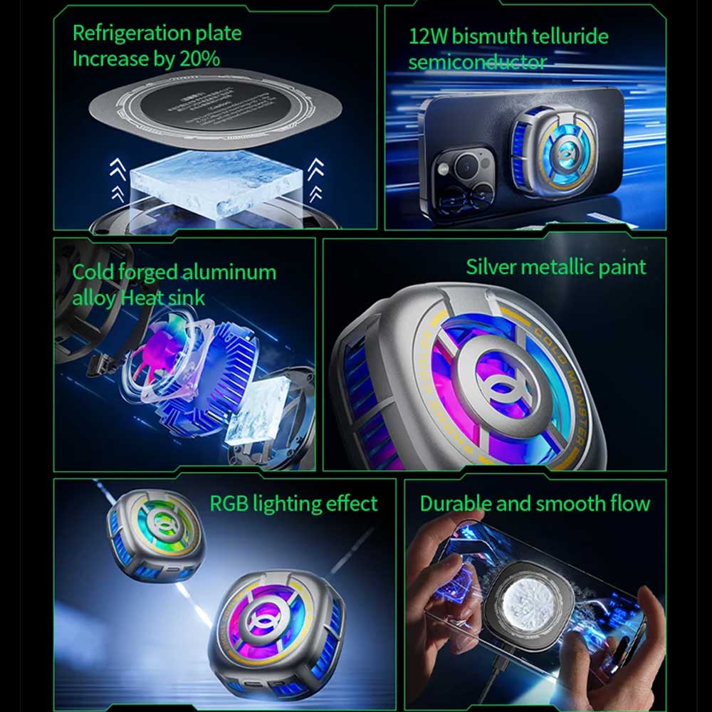 Shop online in Bangladesh, buy Plextone EX2 Ultra Phone Cooler from Cellsii.com at best price. Plextone Ex2 ultra magnetic suction radiator comprehensive ugrade ice induced refrigeration, 20% increase in cooling chip 12W bismuth telluride semiconductor. Support RGB cool lighting effects and enhances the atmosphere of esports.