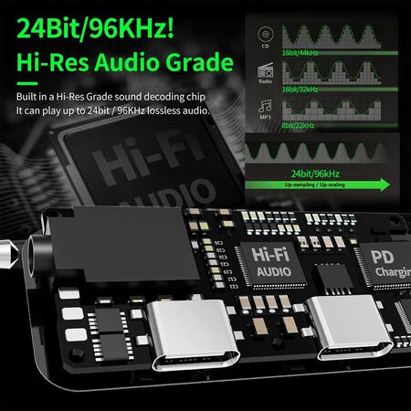 Buy Plextone GS1 Mark II 3 in 1 Type C to 3.5mm Audio Jack Aux Converter Sound Card with Charge Adapter online from Cellsii.com. It supports 24bit/96KHz Hi-Resolution sound quality. Built in Hi-Res sound decoding chip. It can play up to 24bit/96KHz lossless audio. It is lightweight and comfortable.