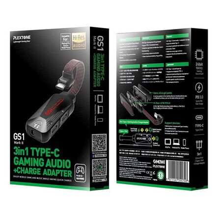 Plextone GS1 Mark II 3 in 1 Type C to 3.5mm Audio Jack Aux Converter Sound Card with Charge Adapter