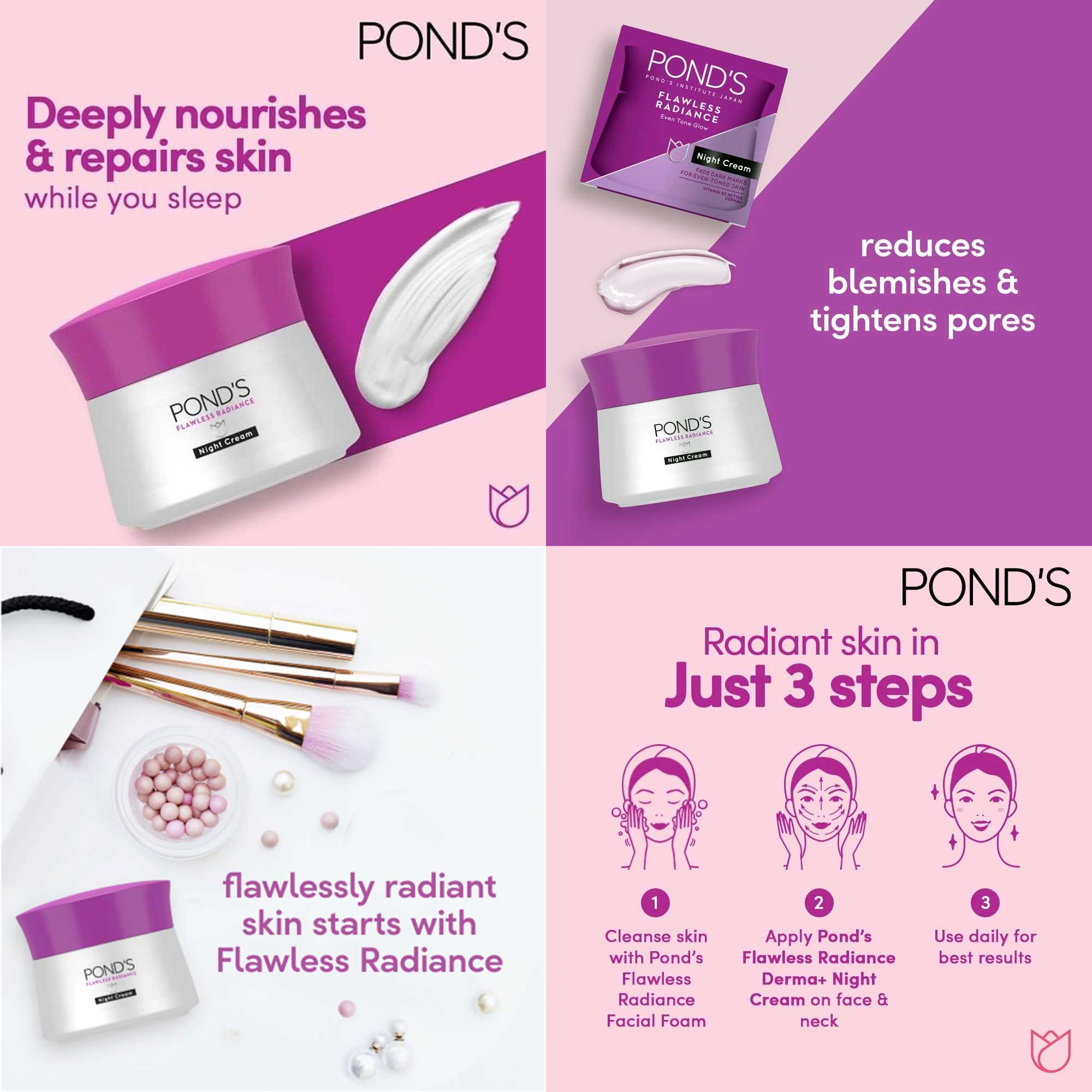 - Pond's Flawless Radiance Night Cream is clinically proven to deeply nourish and repair skin overnight while you sleep.