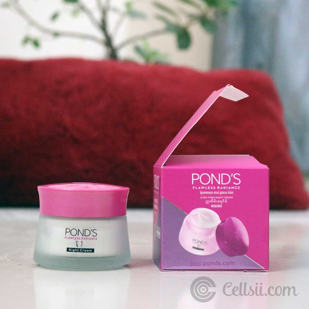 - Pond's Flawless Radiance night cream strengthens skin overnight for even-toned smooth skin.