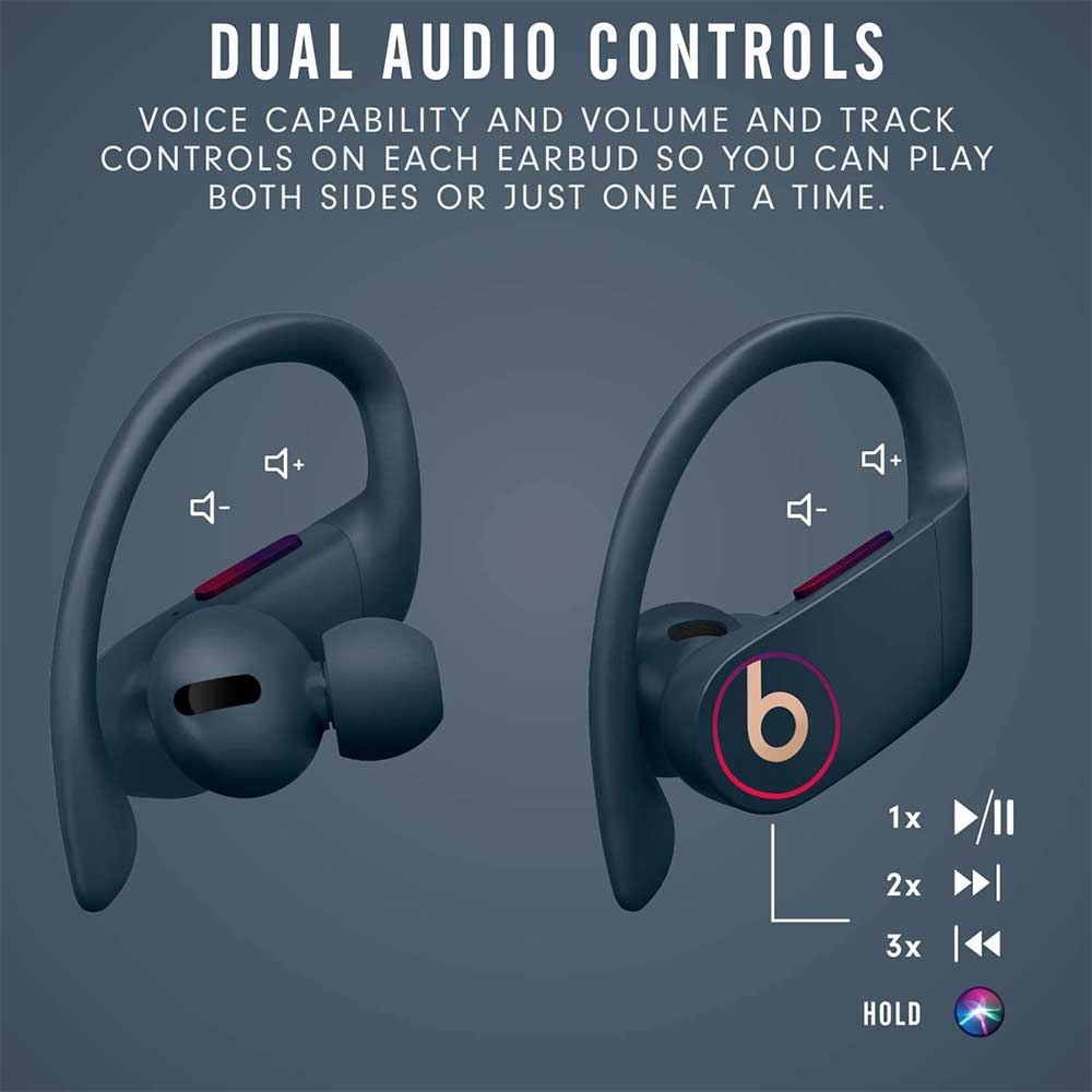 - Controls: Volume & track controls on each earbud, voice capability, and Auto Play/Pause. Hands-free controls with “Hey Siri” and voice assistant on compatible devices