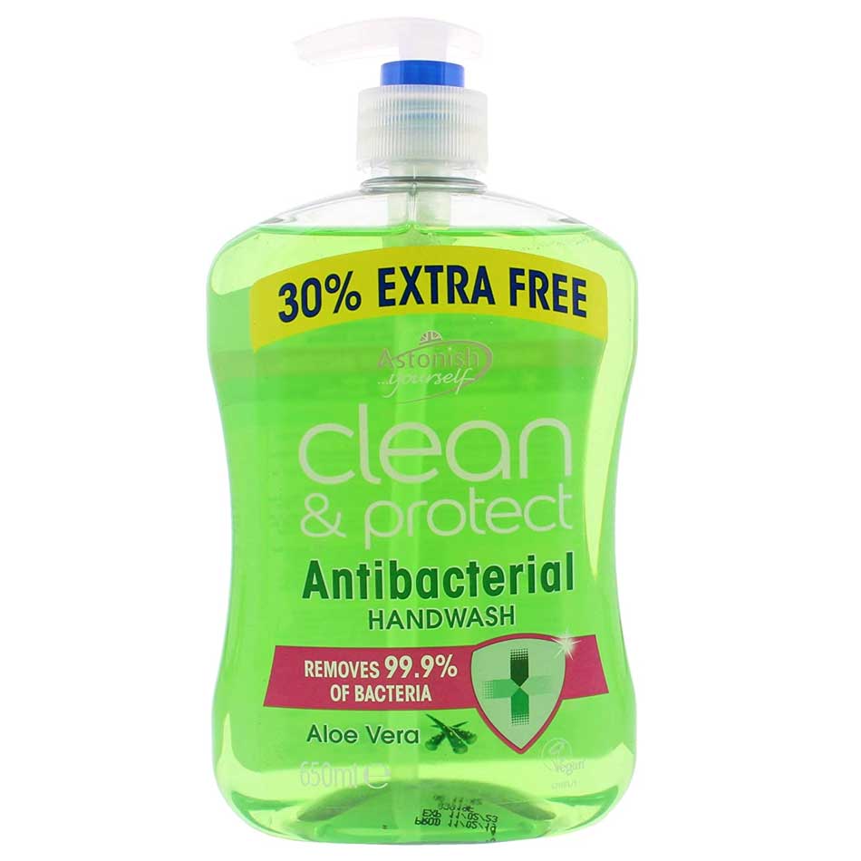 Buy Protect and Care Aloe Vera Antibacterial Handwash 650ml online from Cellsii.com. Astonish Clean and Protect antibacterial hand wash has multi-functioning blue shield protection formula. Clean & Protect is Astonish germ removing variant developed to remove 99.9% of bacteria, dirt and germs. It has the added benefit of an antibacterial action and your hands will be left hygienically cleans. Astonish Clean and Protect antibacterial hand wash has a fresh scent and added moisturizer.