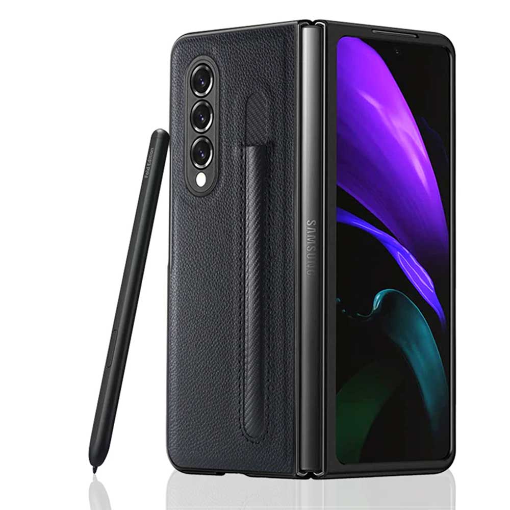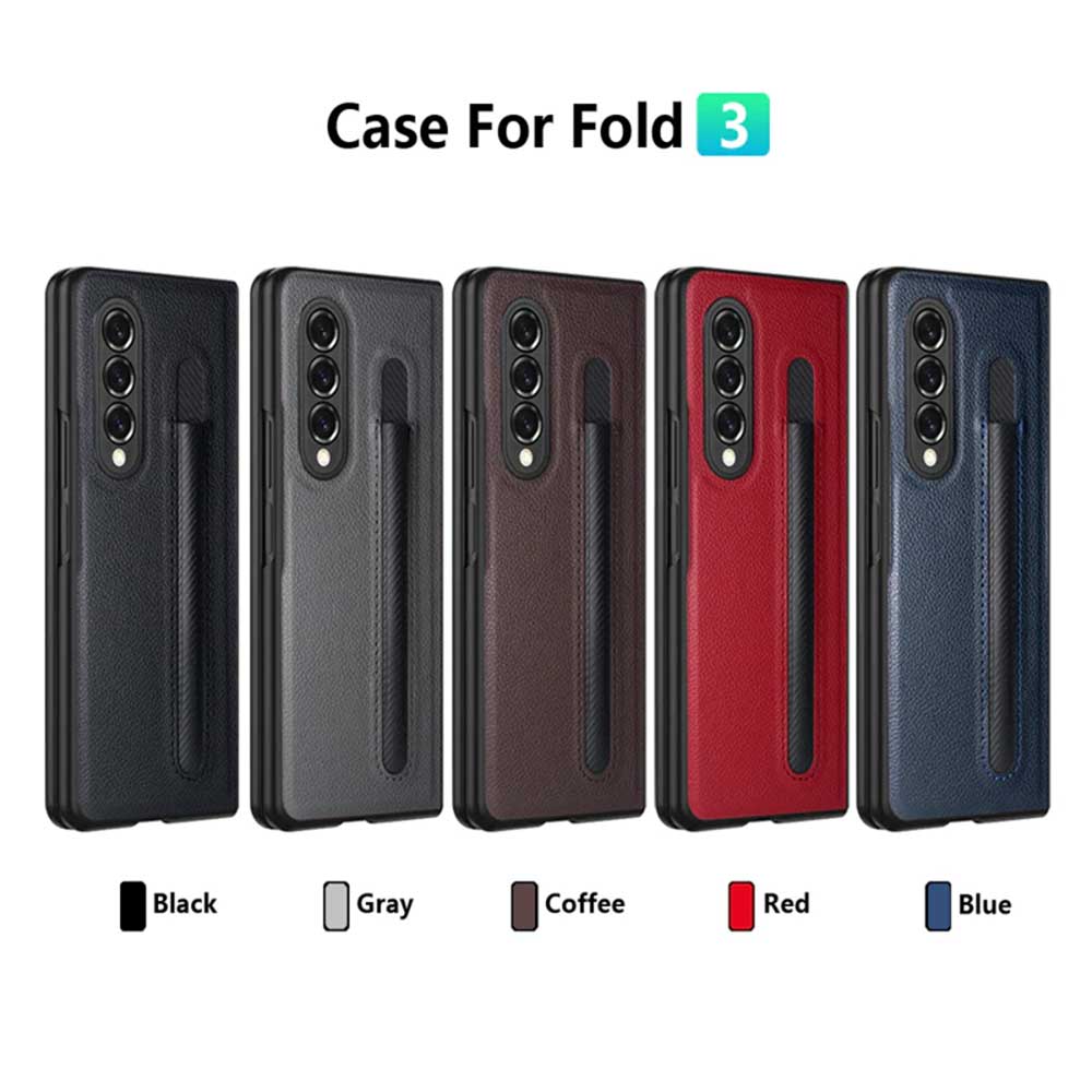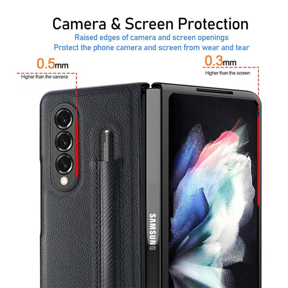 PU Leather Case Camera Lens Protection with S-Pen Holder for Samsung Galaxy Z Fold 3