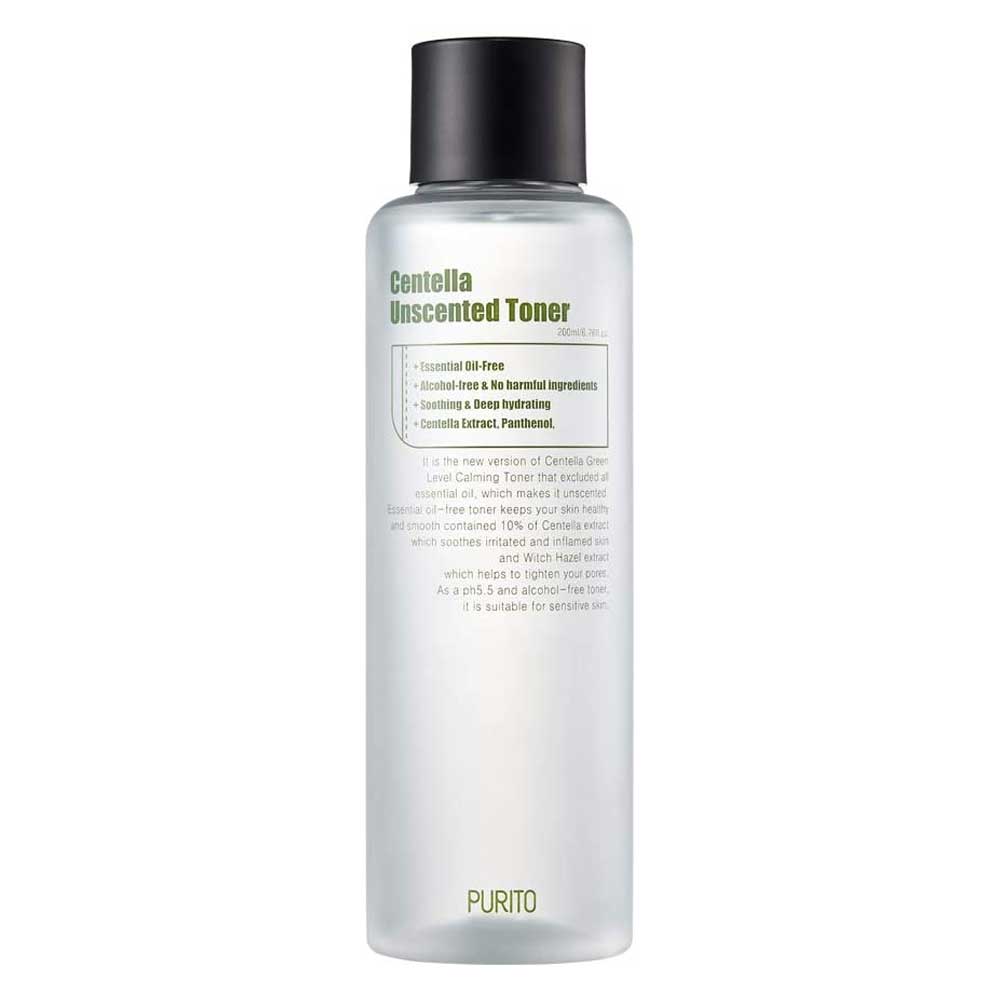 Buy Purito Centella Unscented Toner 200ml online from Cellsii.com. This is an upgraded version of Centella Green Level Calming Toner that does not contain essential oils. 10% Centella Asiatica Extract and Panthenol soothe and relieve irritated skin. This toner contains Sodium Hyaluronate that attracts moisture and penetrates deep into the skin due to its small molecular structure, nourishing rough skin.