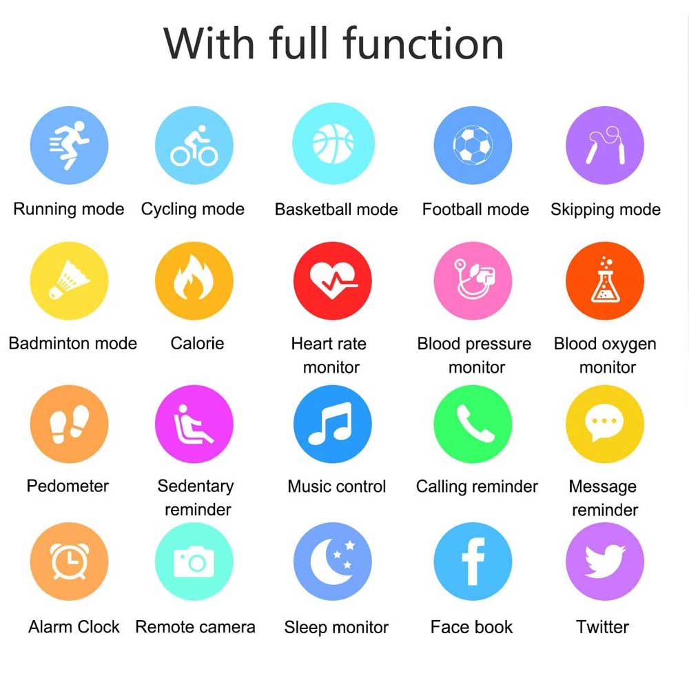 - Smart Alert: Call alert, SMS reminder, SNS notification(facebook, twitter,skype, whatsapp, QQ,Wechat), sedentary reminder, drink water reminder, alarm clock Smart