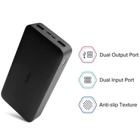 - Classic Dual Port: Dual input ports (Micro-USB/USB-C) and Dual USB Output with smart charging - Redmi Power Bank intelligently adjusts power output up to 18W to deliver fast and efficient charging for each connected device