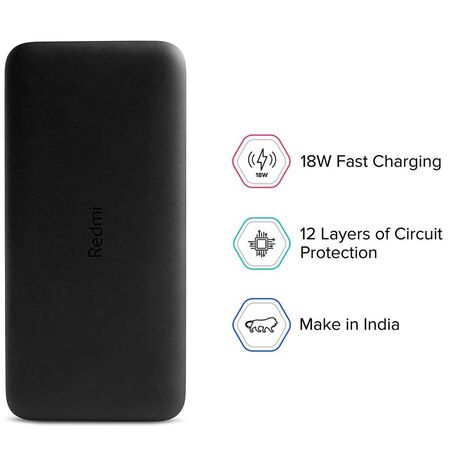 - 18W Fast Charging: The new Redmi Power Bank comes with 18W Fast Charging. It supports 5.1V/2.4A, 9V/ 2A MAX and 12V/1.5A MAX charging outputs that ensures efficient and quick charging for your devices
