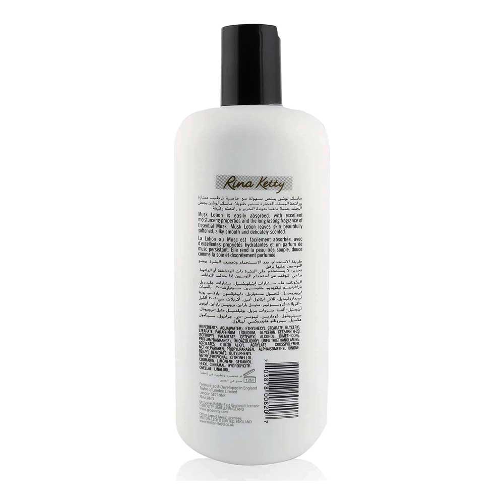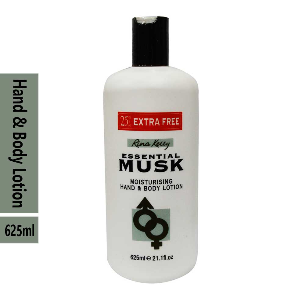 Buy Rina Kitty Essential Musk Moisturising Hand & Body Lotion 625ml online from Cellsii.com. Musk Lotion is easily absorbed, with excellent moisturising properties and the long lasting fragrance of Essential Musk. Musk Lotion leaves skin beautifully softened, silky smooth and delicately scented.