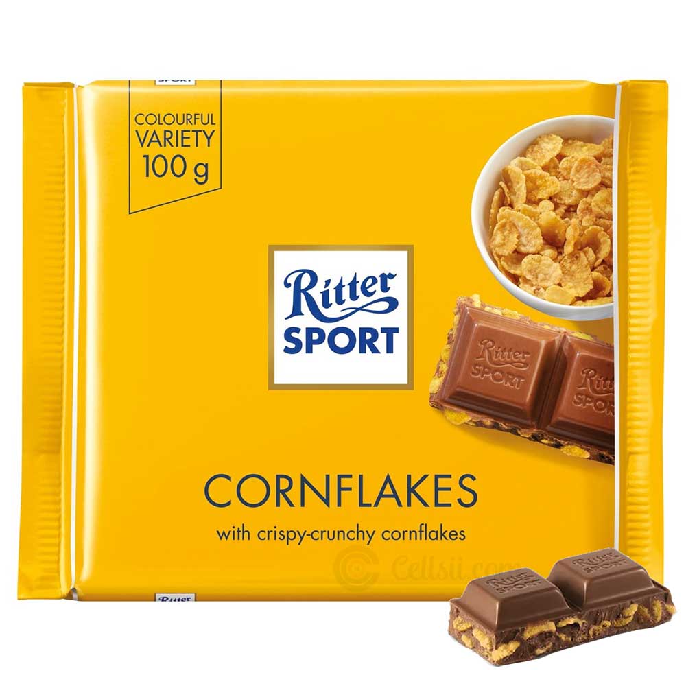 Buy Ritter Sport Cornflakes Chocolate 100g online from Cellsii.com. Ritter Sport Cornflakes gives you breakfast around the clock with crispy cornflakes in creamy chocolate. The flakes are produced and selected according to strict quality standards: after all, breakfast is the most important meal of the day.
