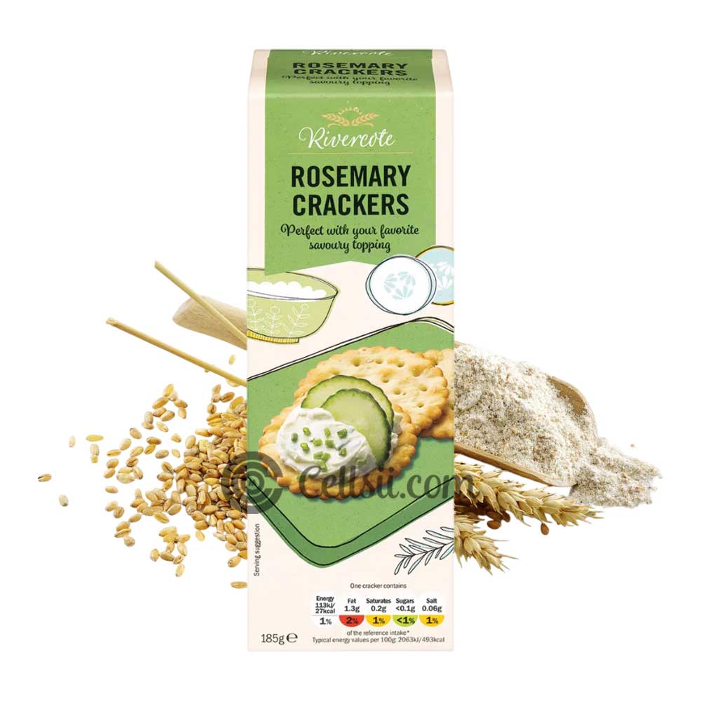 Buy Rivercote Rosemary Sea Salt Crackers 185g online from Cellsii. Rivercote Rosemary Sea Salt Crackers are a delightful snack made with a perfect blend of aromatic rosemary and a touch of sea salt. These light and crispy crackers are ideal for enjoying with cheese, dips, or on their own. The subtle herbaceous flavor of rosemary combined with the natural crunchiness of the crackers makes them a versatile and delicious addition to any snack platter or meal.