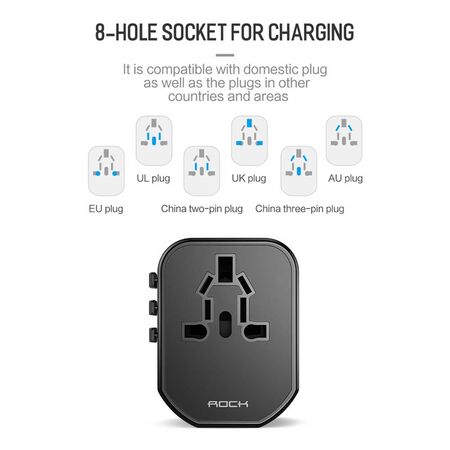 Rock Multi-functional Plug Travel Charger Universal Power Adapter