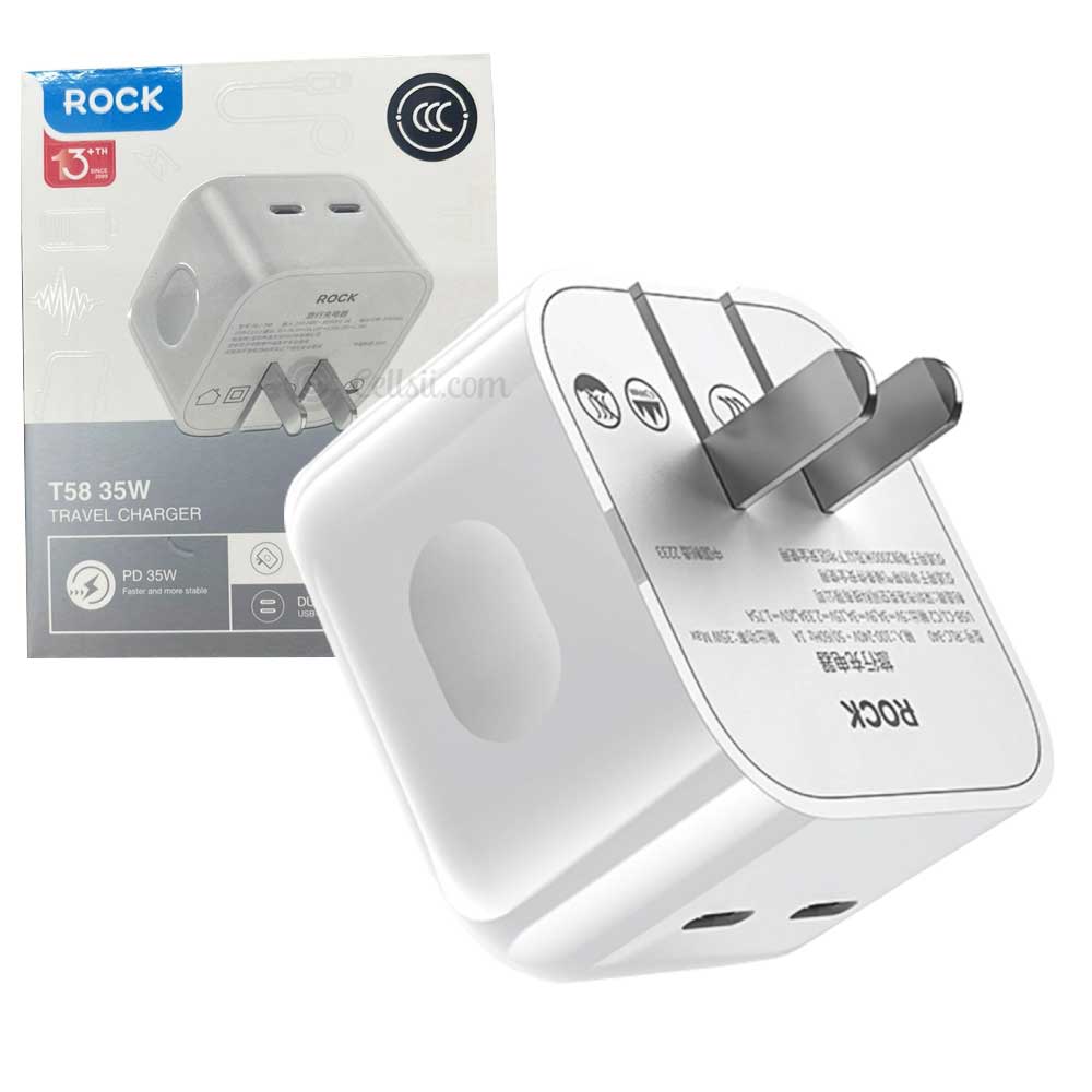 Buy Rock T58 35W Dual USB-C Ports Travel Charger online in Bangladesh from Cellsii.com. Dual PD ports, which can fast charge for 2 devices at the same time dual-control thermostat chip, intelligent temperature control, charging does not get hot Intelligently identify devices and distribute current Lightweight and compact, easy to carry when traveling.