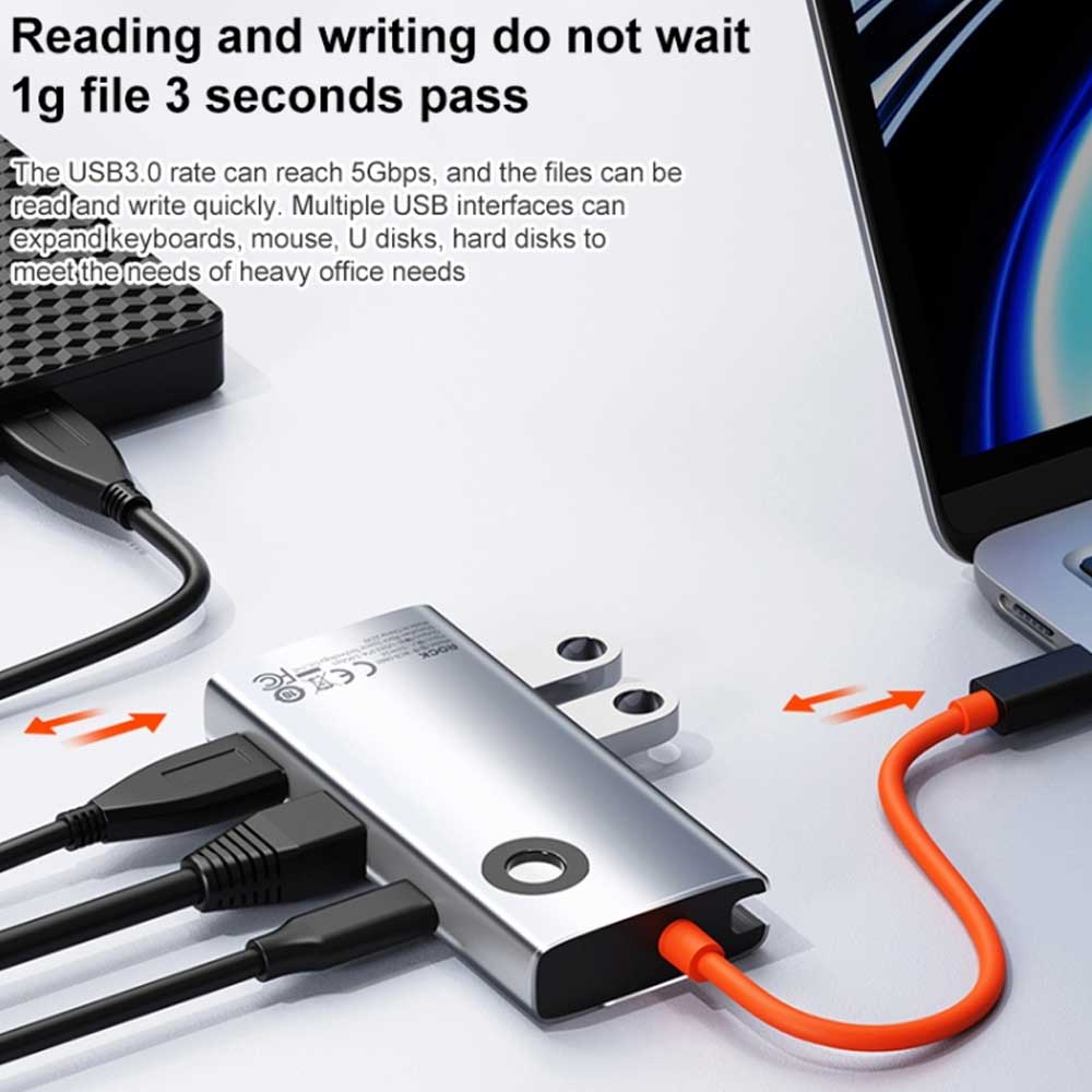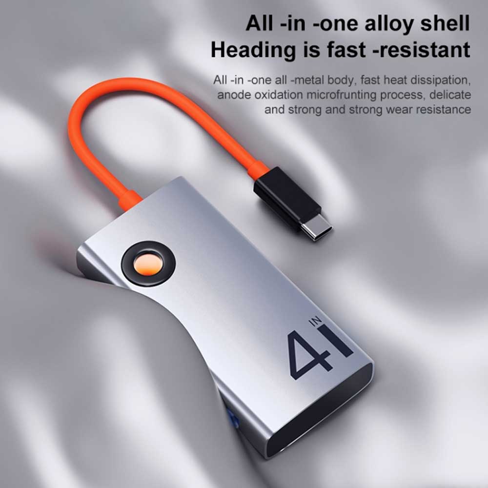 Buy Rock TR26 4 in 1 USB-C to RJ45 Multifunctional Docking Station online from Cellsii.com. One-piece all-metal body, fast heat dissipation, anodized micro-grinding process, delicate, firm and wear-resistant feel. The speed of USB3.0 can reach 5Gbps, which can quickly read and write files. Multiple USB interfaces can expand keyboard, U disk, mouse, and hard disk. Type-C power supply port, strong power can easily drive 4TB hard disk, 5V/2A input power.