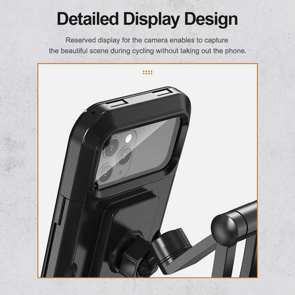 - The phone holder keeps your devices sealed from water, dust, dirt and sand, and provides full touchscreen functionality with its large transparent window. (not designed to be submersed in water)