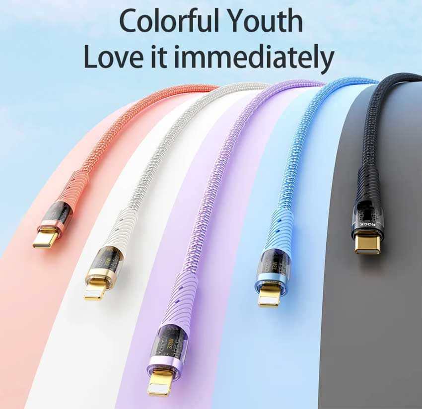 Rock Z21 PD 33W Transparent USB-C to Lightning Fast Charge Data Cable