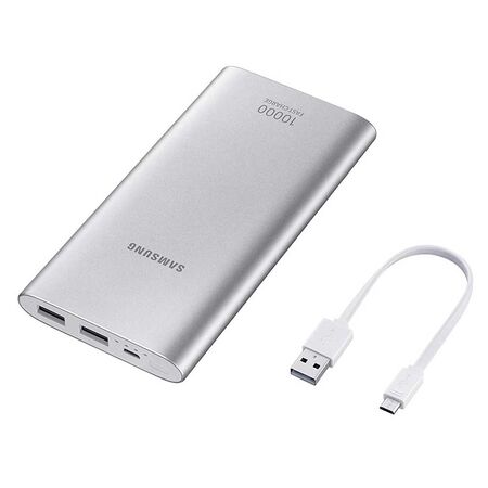 Buy Samsung Battery Pack 10000 mAh 15W Power Bank online from Cellsii.com. Samsung brings to you this power bank which has a capacity of 10000 mAh battery capacity. It comes with dual USB support so that you can charge two devices simultaneously. The power bank has a sleek design and can be carried easily along with you for travel and outings. The body is metallic and comes with a power bank, cable and user manual. It is available in attractive colours and fits easily in your pocket.