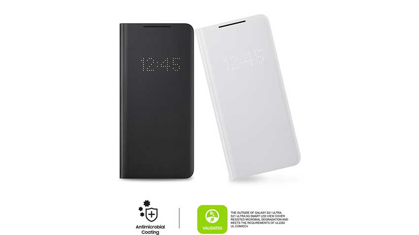 Buy Samsung Galaxy S21 Ultra & S21 Ultra 5G LED view cover online from Cellsii.com. Infused with an antimicrobial coating, the smart LED View Cover blocks microbial growth to help protect against certain bacteria. So you can worry less about germs, and keep your focus on what's at hand. Even with the cover closed, you can use your phone. When you get a call, simply answer or reject it with a tap, no need to touch the screen.