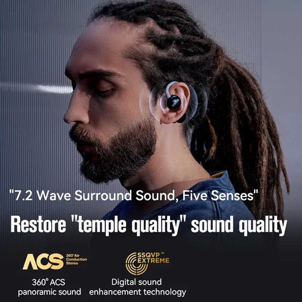 - In terms of wearing, it adopts the same split-type hanging ear design as bone conduction earphones. Combined with the ergonomic design and a clear voice.