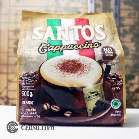 - With best-in-class quality, Santos Cappuccino Instant Coffee is perfect for those who seek a quality cappuccino without added sugars and calories.