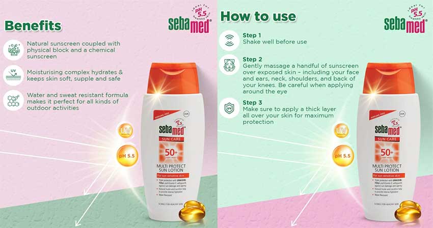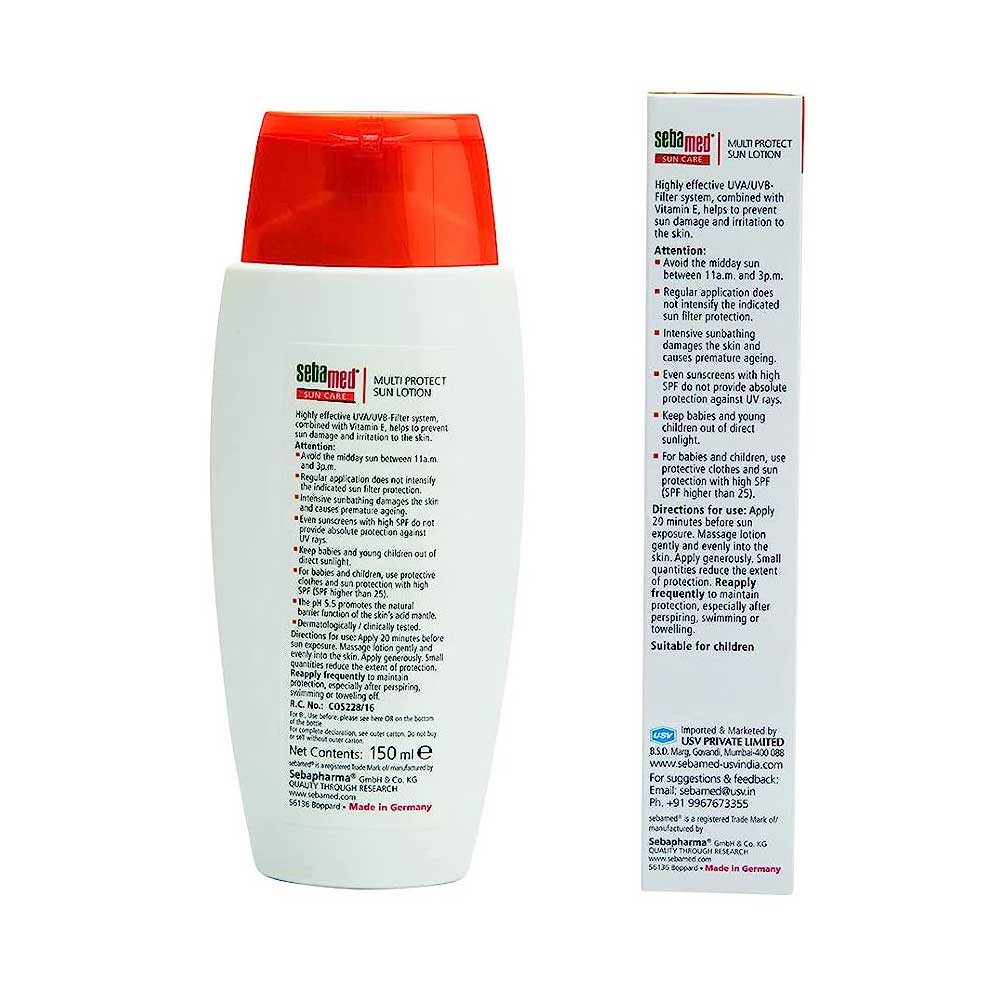Buy Sebamed Sun Care SPF 50+ Multi Protect Sun Lotion 150ml online from Cellsii.com. Sebamed Multiprotect Sun Lotion SPF50+With the pH value of 5.5 for healthy skin Reliable UVA + UVB protection highly effective UVA/UVB filter system, as of SPF 50 combined with micropigments, prevent sunlight induced damage and irritations to the skin.