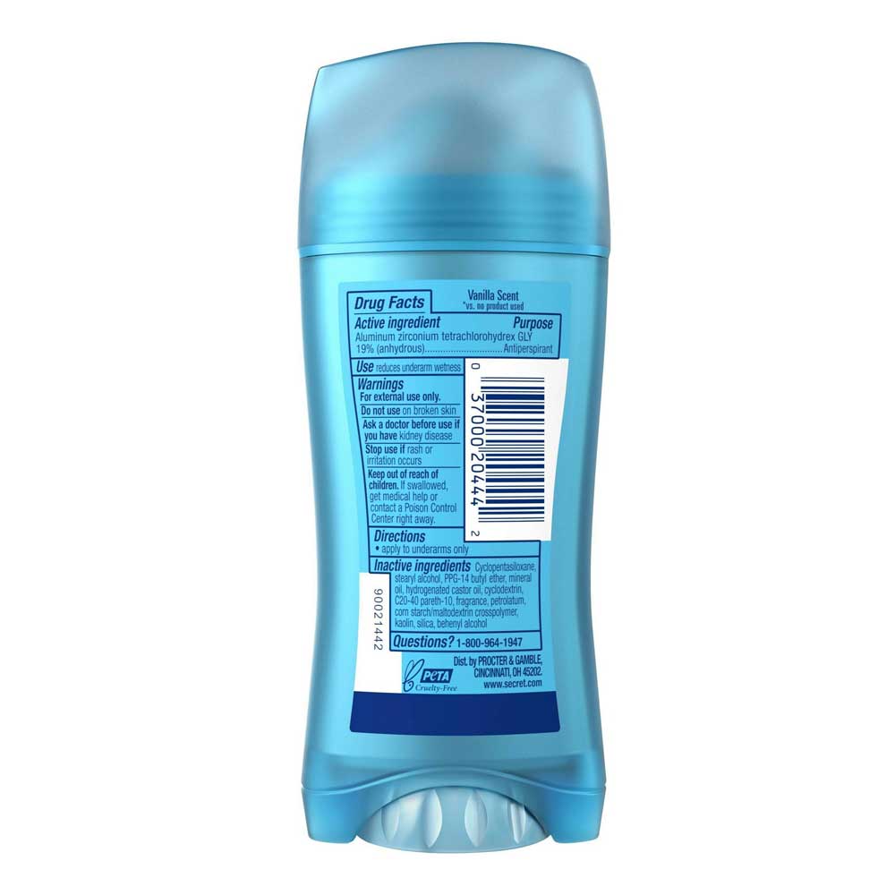 - Stay dry, odor-free, and fresh with Secret Invisible Solid Antiperspirant/Deodorant, Va Va Vanilla scent.