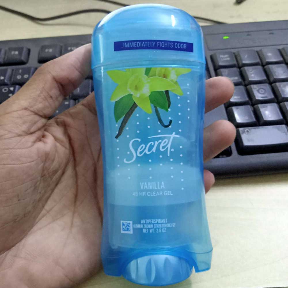 Buy Secret Clear Gel Nectarine Antiperspirant 76ml online in Bangladesh from Cellsii.com. Stay fresh all day long and indulge in a rich aroma of Madagascar vanilla and cream with Va Va Vanilla scented Secret Invisible Solid Antiperspirant and Deodorant. Start dry and stay dry with this invisible solid that goes on dry with a smooth, even application. Sweat and odor are no match for its 48 hours of odor control and wetness protection.