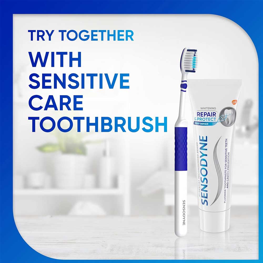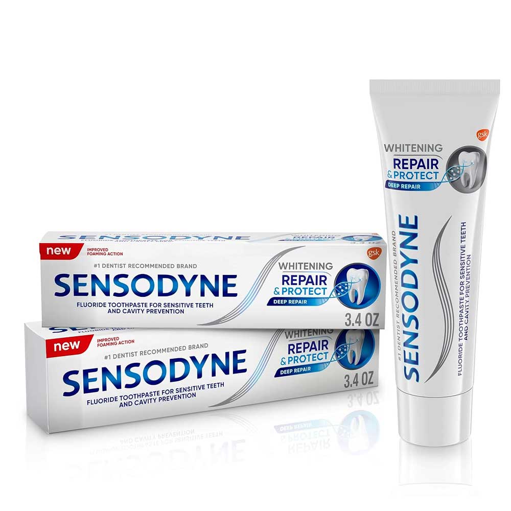 Buy Sensodyne Whitening Repair & Protect Deep Repair Toothpaste 96g online in Bangladesh from Cellsii. Sensodyne Repair and Protect Whitening is a daily whitening fluoride toothpaste that has a clinically proven ingredient to provide relief from sensitivity and deliver lasting sensitivity protection with twice daily brushing. This whitening toothpaste is formulated with stannous fluoride, and creates a reparative layer to help relieve tooth sensitivity.