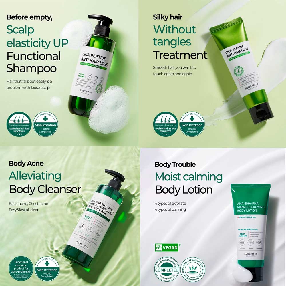 Buy Some By Mi Miracle Hair & Body Starter Kit 4 Pcs Set online in Bangladesh from Cellsii. The Some By Mi Miracle Hair & Body Starter Kit is a curated collection designed to rejuvenate and care for both hair and body. This kit typically includes products that are part of Some By Mi's Miracle line, known for their gentle yet effective formulations, often featuring ingredients like AHA, BHA, and PHA, which help exfoliate, cleanse, and nourish the skin and hair.