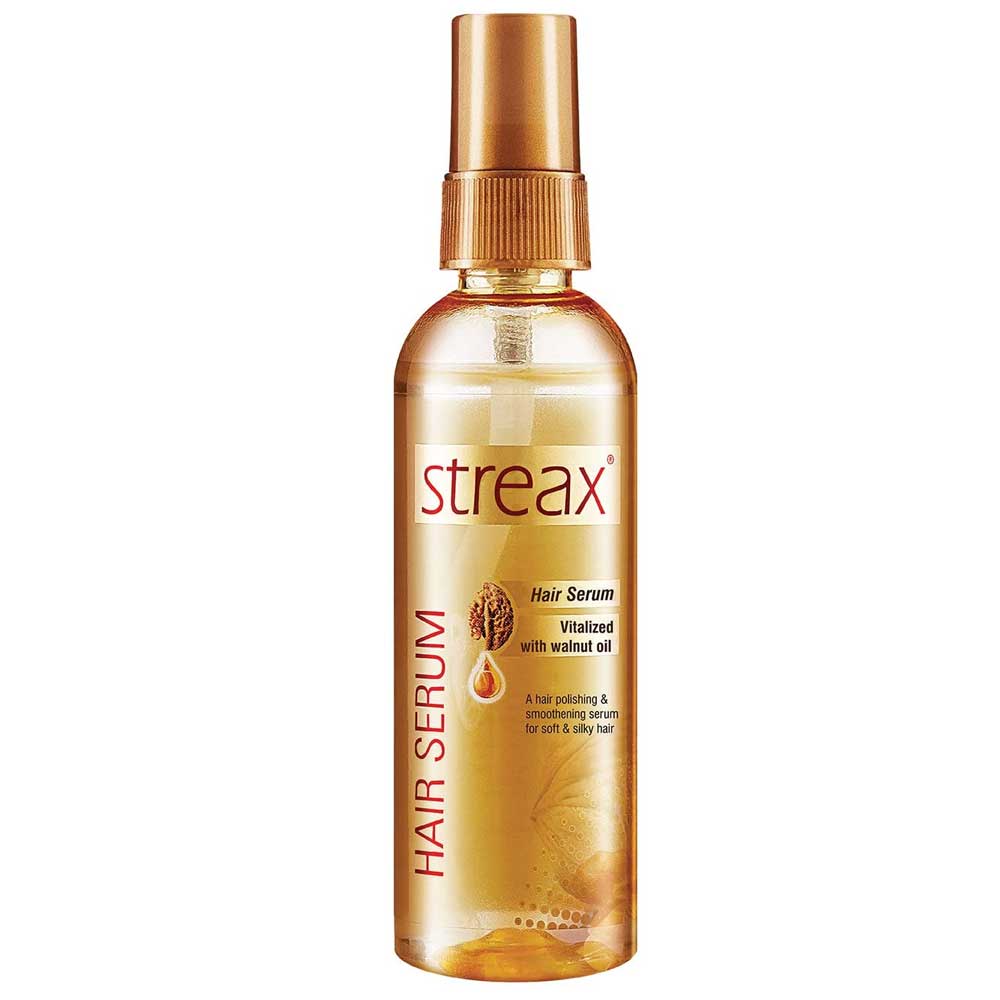 Buy Streax Hair Serum with Walnut Oil 90ml online from Cellsii.com. Streax Hair Serum is vitalized with Walnut Oil to give your hair the instant shine and smoothness which helps you Shine All Day! Streax hair serum is crafted with love and care to give your hair soft and silky touch. This hair serum reduces frizz and gives a sleeker finish. Streax hair serum will be your best partner to have the confidence you require to Shine.