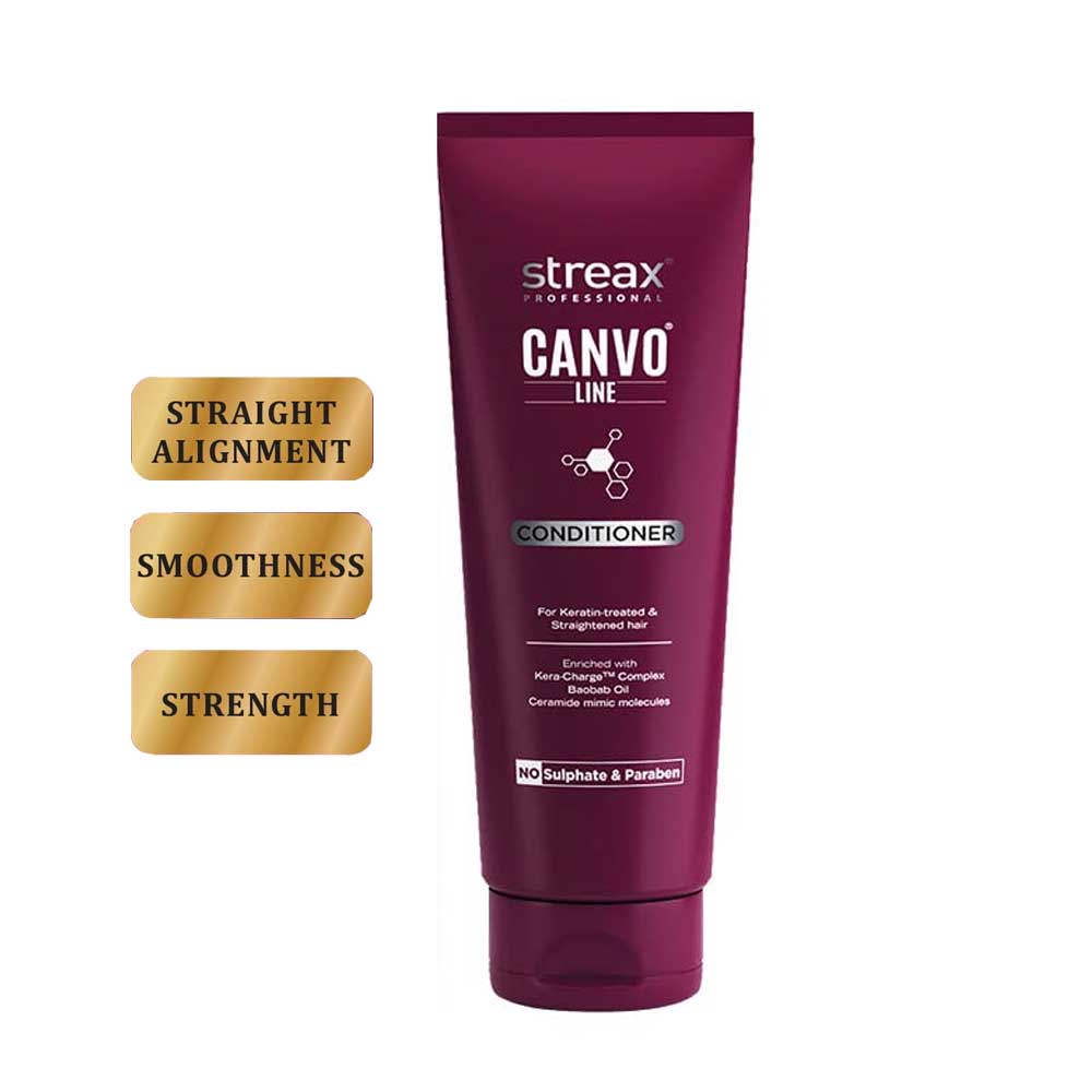 - Streax Professional Canvoline Conditioner is enriched with a unique Kera-Charge Complex plus Ceramide mimic molecules to help deeply nourish, condition and restructure chemically straightened or sensitised hair.