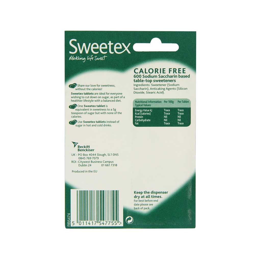 Buy Sweetex Calorie Free Sweeteners 300 Tablets online from Cellsii. Sweetex tablets are ideal for everyone wishing to cut down on sugar, as part of a healthier lifestyle with a balanced diet. One tablet is equivalent in sweetness to a 5g teaspoon of sugar but with none of the calories.