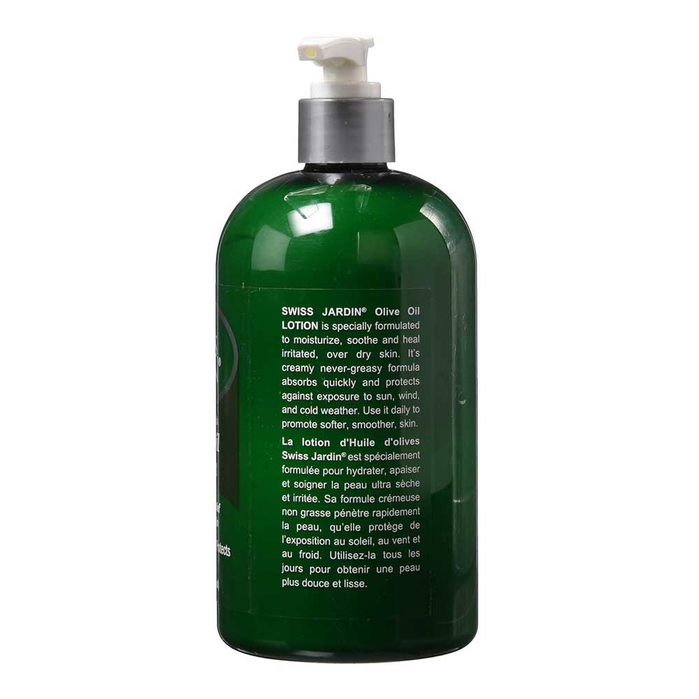 - Swiss Jardin Olive Oil Lotion is specially formulated to moisturize, soothe, and heal irritated, dry skin.