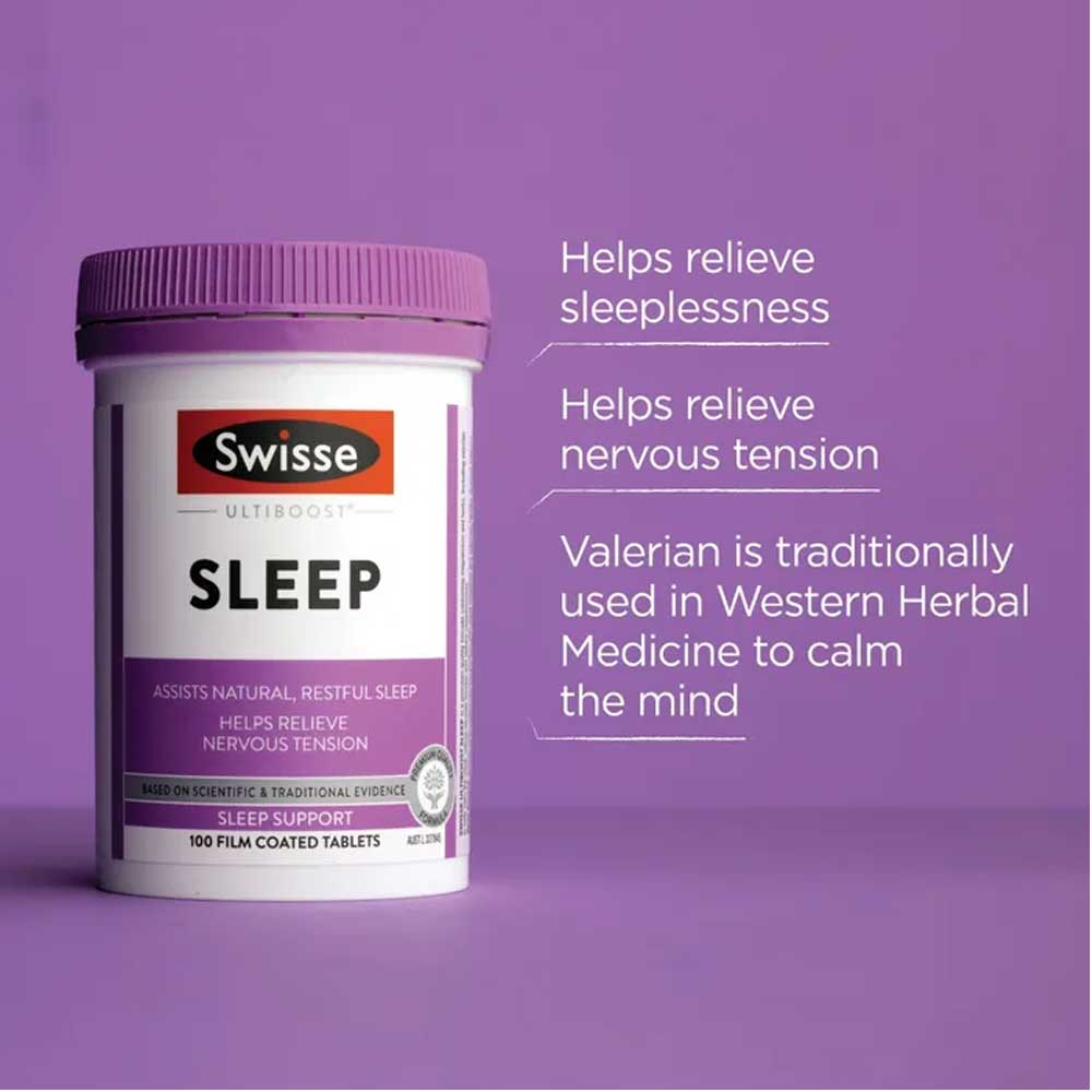 - Swisse Ultiboost Sleep is based on a premium quality formula to help relieve nervous tension and assist with natural, restful sleep by including magnesium and a combination of relaxing herbs such as valerian and hops.